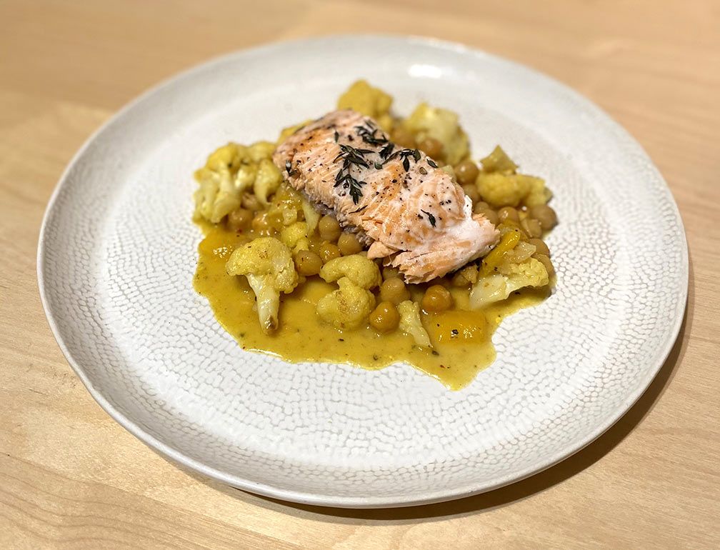 Bari recept: Pečený losos s květákem, cizrnou a mangem